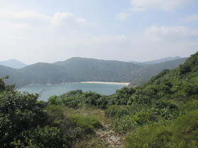 依「上路」經吹筒坳上西灣山(314米),在繁忙的星期日「上路」竟然沒遇上其他人,也許是要上山的關係,但距離倒是較「下路」為短,時間亦明顯較「下路」為快。東壩及大浪西灣向來是郊遊熱點,往來西灣山的路熱鬧非常,除了來自五湖四海的遊人外,還有很多加緊操練毅行者的人。在西灣山附近賞過大浪四灣(西灣、鹹田灣、大灣及東灣)風光後,穿過山頂,朝著左面的罾棚角半島轉入小路。