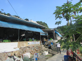 過了分水坳,在珠門田路口轉右走十五分鐘往梅子林,可能人流較少的關係,路況較為濕滑。梅子林村雖然沒人長居,但環境一直都有人打理,屋舍格局相當整齊,算是區內最不像廢村的廢村了。依水泥村徑落荔枝窩,適逢街渡開通後的首個秋季,村民加以活化村落吸引遊人,把其中一座廢屋改建成文化館,描述本地農耕史為主,另一邊廂亦多開了一家士多。仍在有記士多吃雞粥,是日雞粥質素不俗,至少沒有吃到雞內臟。