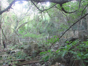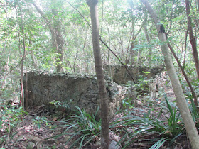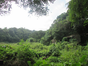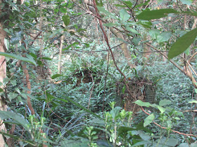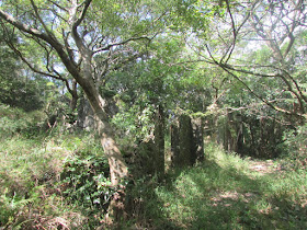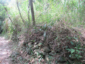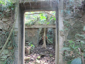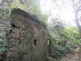 朝荔枝窩方向下行,途經亞媽笏廢田範圍,村舍在田後的樹林中,位置同樣隱蔽,還得穿越一片沼澤才到。上月才探過亞媽笏廢屋群,但過了一場十月罕見的大雨及颱風,村口大樹已塌下,無從進村細探,據說某屋還刻了座魚型洩水裝飾,惜該村荒廢良久,樹木藤蔓繞著屋子而生,再好的擺設現在也變成「甚麼都沒有」。