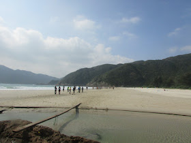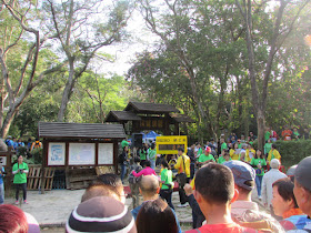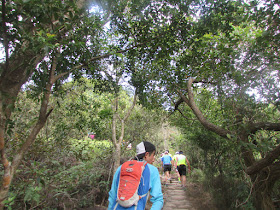 說回正題,七點左右到太子站乘專車到北潭涌,到傷舞樂園報到處時很多參加者已準備,扣好號碼布及寄存行李後,八點四十分左右在較有利的位置等候起步,未到九點就突然宣佈開始,有的參賽者意料不及,大家當然一窩蜂的慢跑。到萬宜坳時可能只有兩個義工的關係,情況非常混亂,大量人搶先恐後蓋印,把鐵架子也撞至猛力搖晃,差點整個塌下,那個位置根本不適合作檢查點,因為只是剛開始,加上正處大路,人流非常密集,縱使再多幾個義工也未必足夠應付。依北潭郊遊徑而上,過了北潭坳後參加者密度開始下降,至赤徑檢查點時已變暢順,翻過大浪坳落鹹田灣,可惜此時小腿已有輕微抽筋,在平路不能快跑了。