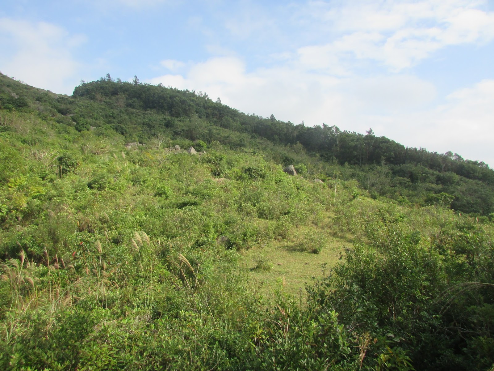 像「石龍」般的短草山徑,路上滿是石頭: