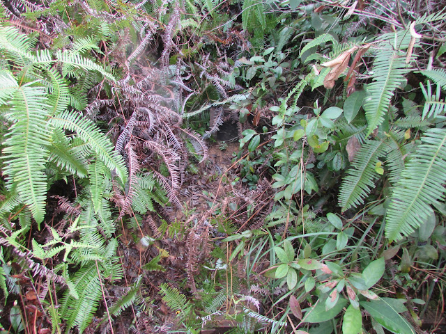 從鹿頸快速的經鳳坑至谷埔,在村尾「松記士多」後越過維修斜坡用的閘門而上,再接右邊隱蔽山徑。石芽頭西脊乃遠足隊自行開闢的荒脊,所以路況不明顯,林中有不少似是而非的通道,所以也找了十餘分鐘才覓得正路。踩著鐵芒萁而成的路胚上行,由於附近的灌木叢亦頗密,引路帶更是時有時無,所以要「摸著石頭過河」,萬步小心,否則會迷失在林裡的。中段路胚變得明顯但斜度亦很高,臨到山頂時路胚又變得不明顯,同時還看見一些梯級,相信漁護署多年前打理過石芽頭至谷埔的山徑,但自荒廢後又變成密林地帶了。用了一個多小時才由谷埔上達石芽頭,從山上可見谷埔、沙頭角海及鎖羅盆一帶,惟樹木漸高,景觀也變遜色了。