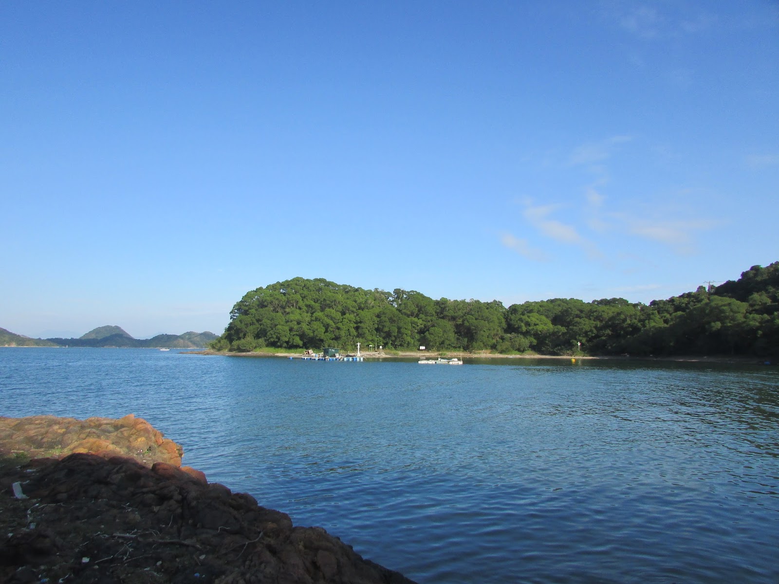 西流江的另一邊為牛屎湖灣,海中有個小漁排: