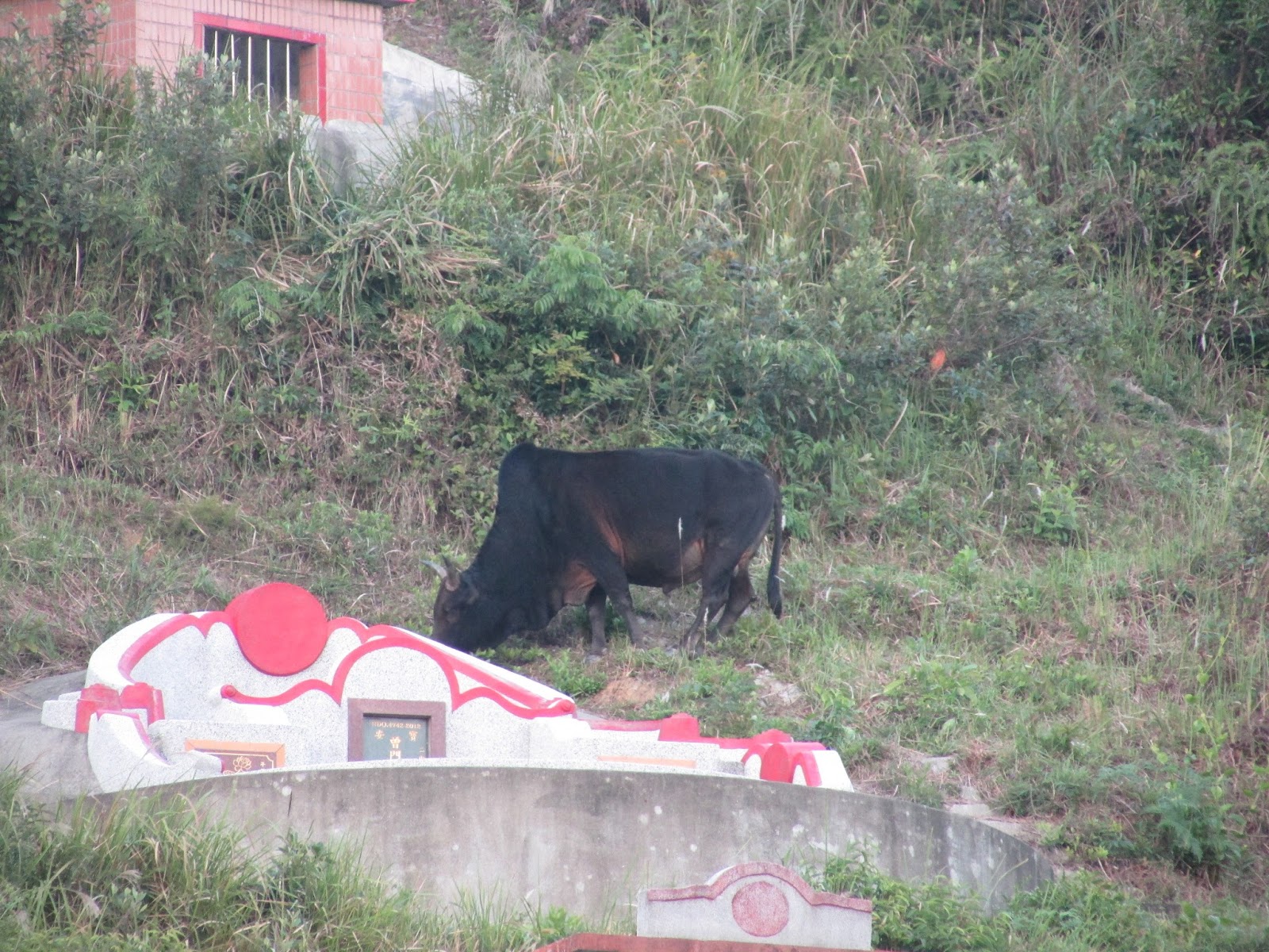在三椏村原居民葬區吃草的牛隻: