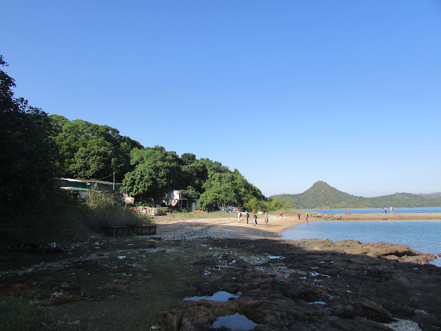沿古道經分水坳快速的往荔枝窩,或許近來多次惠顧「有記士多」緣故,連老闆也認得坳仔了,在此吃過豆花及雞粥後繼續上路。穿過山尾坳至三椏碼頭,碼頭後乃往西流江之海岸線,在潮退下近三椏有少量的攀爬位,但具經驗的遠足人士來說沒甚難度。由於已開始水漲,所以要加快步伐前行,以免涉水,近一小時步程抵達西流江,那是相當遠離市區的小漁村,只有約兩排寮屋,住了幾戶老村民,村民或正外出捕魚,所以無人在內,狗隻則在村前沙灘留守,近處小島乃印洲,屬「印塘六寶」的玉璽。