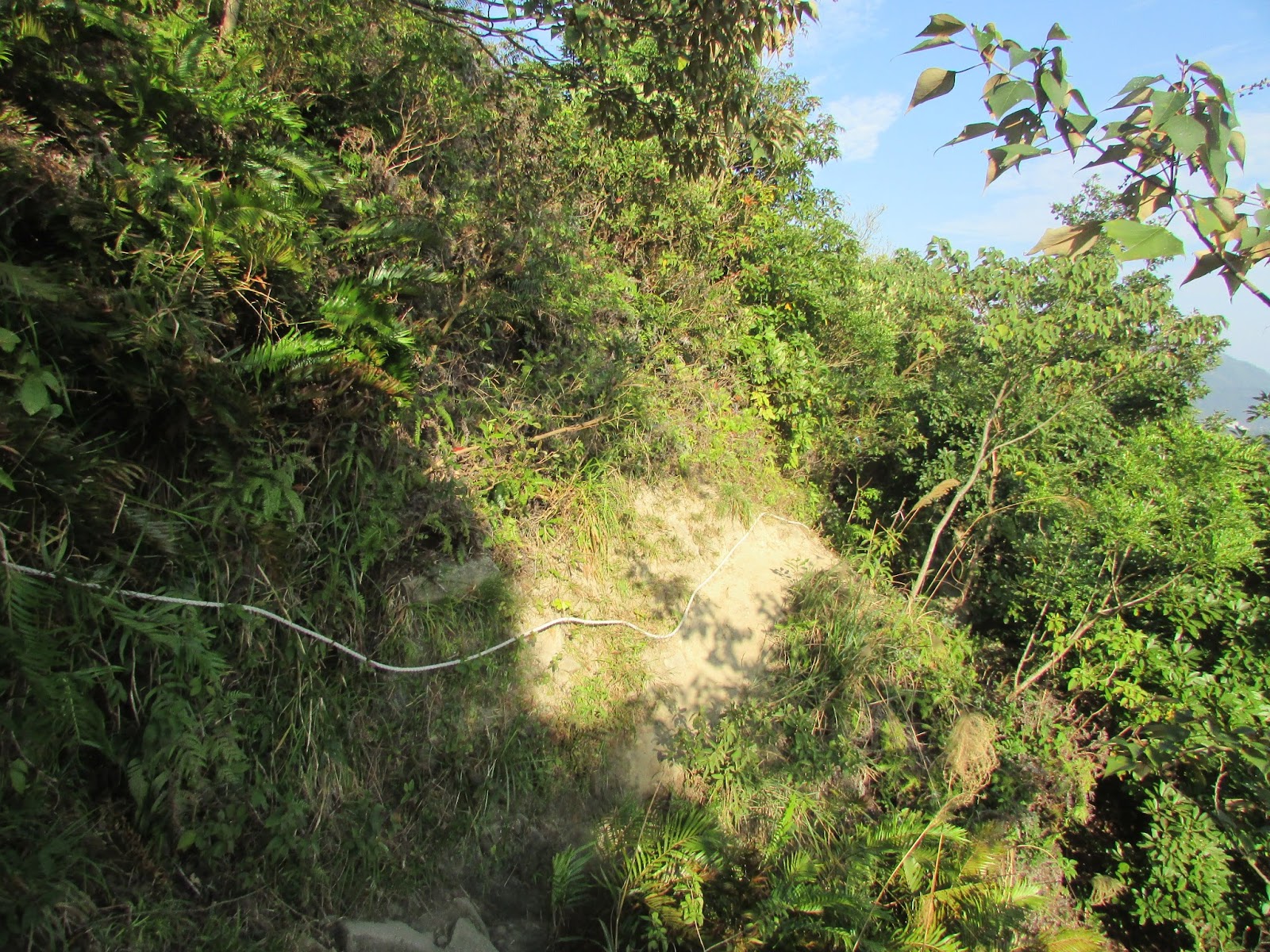 經一處小懸崖頂,此處乃「日落脊」的交界處,從此下望,可見「日落脊」之險要:
