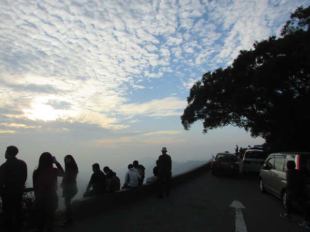 由機坪至象山一段是個竹林,而在象山的景色也不太好,所以在象山不作停留,直往東山(飛鵝山道路邊),不過途中要急降一段斜坡,所以很小心的下走,否則就一下了子滑到幾十米下了。由機坪至飛鵝山道約需大半小時,抵達飛鵝山道時相當熱鬧,應有不少是為了看全年最後一個日落。看看天空,夕陽下的雲層好像較厚,既然日落未必有望,不如轉走山路,繞經東洋山(533米)再落蠔涌。