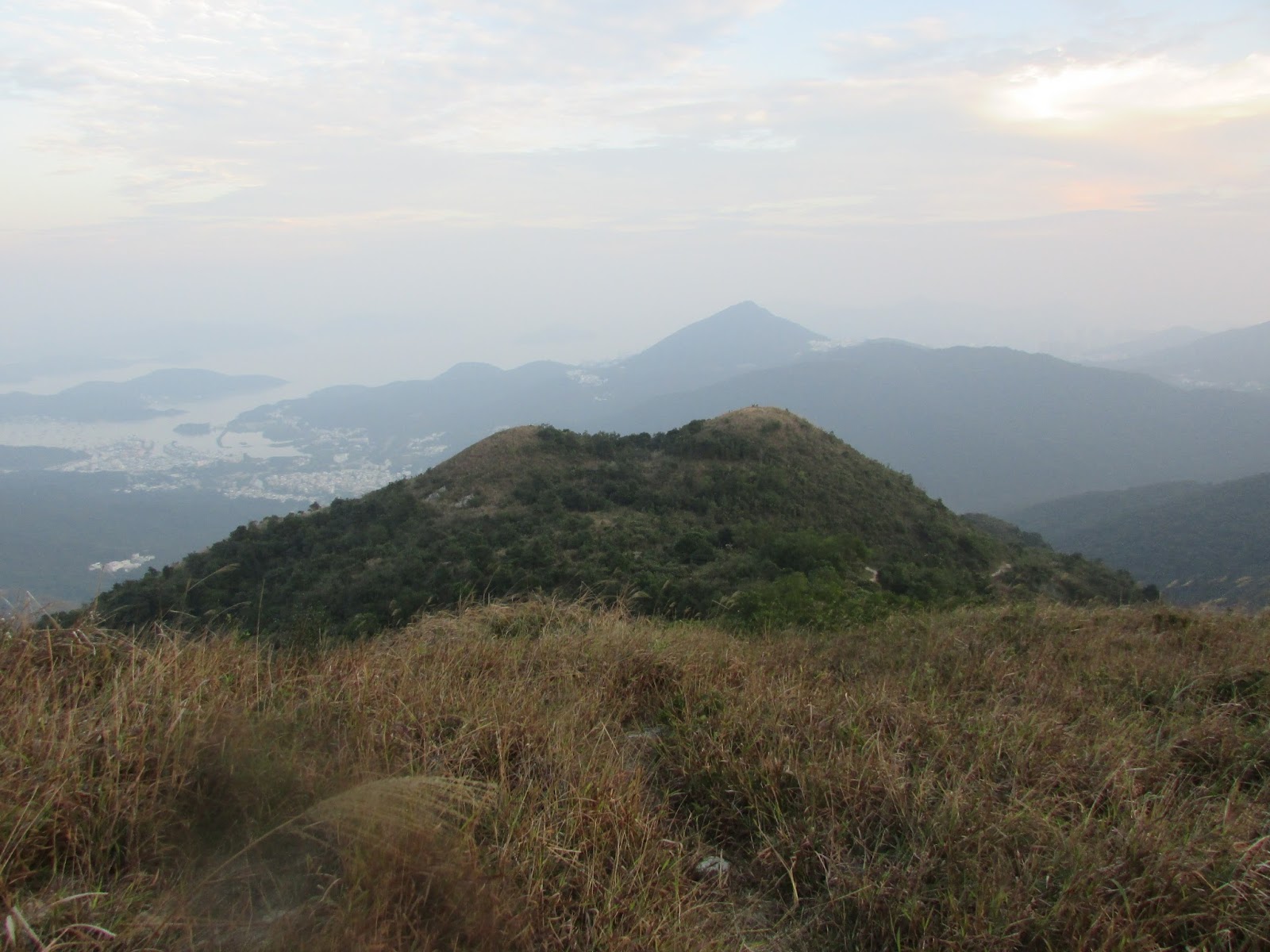 在飛鵝山頂回望大老山、慈雲山及全年最後的夕照: