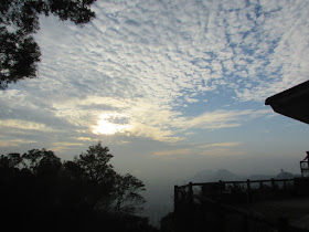 由機坪至象山一段是個竹林,而在象山的景色也不太好,所以在象山不作停留,直往東山(飛鵝山道路邊),不過途中要急降一段斜坡,所以很小心的下走,否則就一下了子滑到幾十米下了。由機坪至飛鵝山道約需大半小時,抵達飛鵝山道時相當熱鬧,應有不少是為了看全年最後一個日落。看看天空,夕陽下的雲層好像較厚,既然日落未必有望,不如轉走山路,繞經東洋山(533米)再落蠔涌。