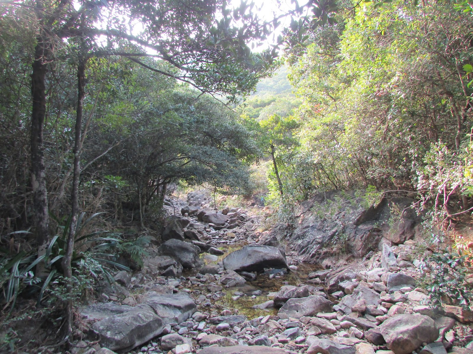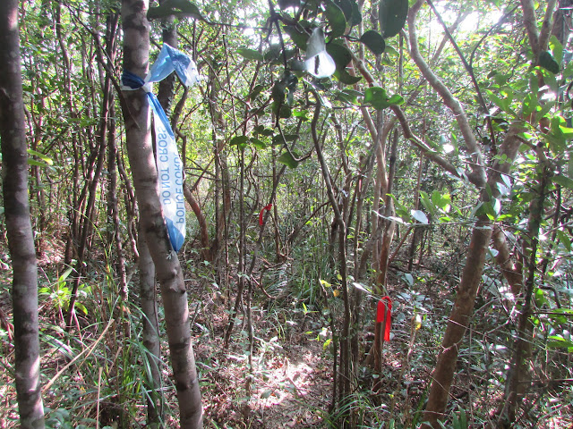 是日走港島區赤柱至大潭之間的山嶺腹地,計長連山、老虎山、蓮花井山、龜山及馬坑山合共五山,海拔在二百至三百米之間,由於那裡非正式山徑及以密林為主,沒甚景觀可賞,官方地圖更顯示無路,路況亦很崎嶇,所以沿途鮮有人走訪。去年四月曾走訪長連山、老虎山至大潭篤水塘,不過沿途蜘蛛網實在太多,到老虎山時被迫放棄,是日走另一邊,原訂走遍五山後轉北面小路落大潭中水塘,唯路況較想像中崎嶇,超出原訂時間,所以取道蓮花井山落水塘,趁還有少許時間參觀大潭水塘作結,而長連山落山的一段留待容後再探。