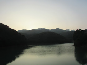 大潭水塘始建在前世紀末至上世紀初期,原意為港島區提供食水,共分四座水塘,由北至南,依次為「上、副、中、篤」,前兩塘為一組,後兩塘為另一組,中間則是「雙潭石澗」,歷史則由南至北依次遞增。水塘已有過百年歷史,當中的廿一座水務設施包括石橋、水壩、掣房等都被列作法定古蹟,並以「水務文物徑」連接,屬熱門的郊遊地點。沿車路經水塘群緩緩上行,在石橋、水壩群古蹟間穿插,正值夕陽西下時分,雖然太陽未能直至在水塘上,不過在柔和光線映射下,倒是突出水塘的靜美的一面。