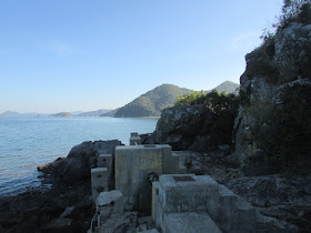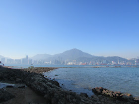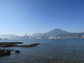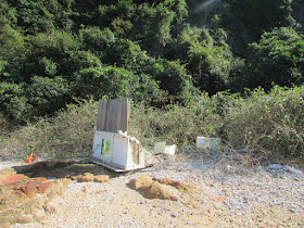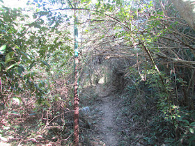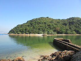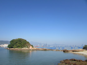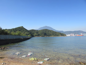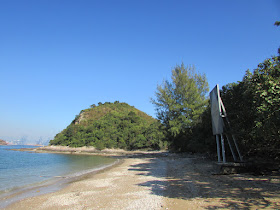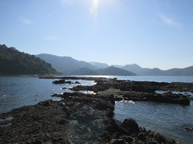 十一點半在鹿頸起步,起步不久就遇上一行幾十人的郊遊團,要排隊前行直至田中的捷徑為止,途中路上亦有相當多遊人。半小時左右步程抵谷埔,再接往榕樹坳山徑,至第二個路牌處轉左面隱蔽小徑,穿榕樹坳原居民墳區下降至海邊。途經某壁邊,上次大退潮下露出岸邊的岩石,現在藏在水中,難度自然高了不少,花了很長時間找尋安全的踏腳位,避免踩中濕滑石面而滑倒,那裡一滑隨時會丟命的。半小時步程抵達亞公咀,盡頭是個海岬,漲潮下連接海岬的位置被水掩蓋了,既然上次到過,是日就直往下個咀——企山咀。
