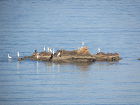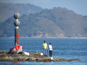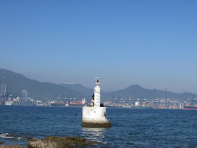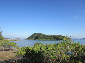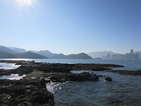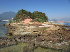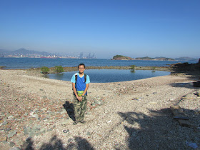 朝北走至長排頭,傳說中的「人間天池」在那兒,可惜「天池」不在山上,真誤導人,純粹是灘上貼近海邊的石堆高度較高,海水滲到低窪地而成此景,在欣賞「天池」的同事還可順道走至長排頭盡處的航標,近觀深圳鹽田的風光。在「天池」留影過後,經新舅埔角、上角咀抵鎖羅盆,在大退潮時還可循陸路走訪長石咀,沿途都以石灘或紅樹林地帶為主,路況基本上不再贅述了,沿途一直看見一些釣魚人士,有的更在附近的「雙排」小島上釣魚,臨到鎖羅盆時,還遇到一班疑似新手才開始綑邊,如按一般人的步速,起碼要五點才到榕樹坳,除非走山路捷徑。