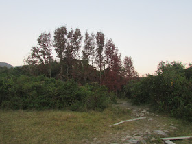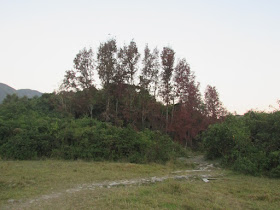 鎖羅盆村之前到過好幾次,不過現時未到農曆新年,原居民應未回村貼新春聯,而居民相信也不在,所以就不入村,轉往十分陡斜的樓梯上山崗,再落荔枝窩村去。四點多,荔枝窩士多已關門,既然沒東西可吃,想起海邊的觀景台一直都被忽略,所以就在此小休十分鐘,兼欣賞荔枝窩村、村前內灣及小灘魚塘一帶的風景,然後就馬不停蹄的經三椏村、三椏涌回烏蛟騰作結。五點多,在三椏涌仍有一些毫無裝備的人往三椏村方向走,在遠足旺季更幾乎每次都有(此時士多已關門,荔枝窩及三椏都無船回市區),真的不明白為何老是有新手臨入黑才去程(可能認為夜行才過癮?),到下苗田附近時碰到有個又是毫無裝備、呆若木雞的老人,向坳仔問環湖徑路況如何,都不知想怎樣,只好著他往烏蛟騰方向走。