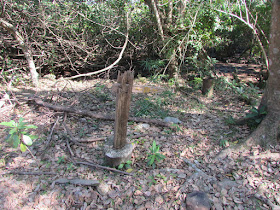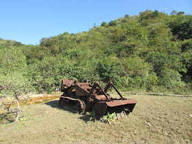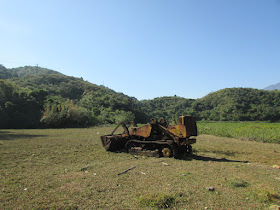 繞經榕樹坳村腹,走至堤壩另一邊,繼續綑邊至三角咀(因有三個小岬角而名),此時水位稍低,整體變得非常平緩易走。轉往大深涌及滘仔內灣,內灣深處當然是紅樹林地帶,故在後面的小徑繞過,期間聽到有群遠足人士在附近山徑覓路(乃榕樹坳至上角咀之間的「捷徑」),但一直沒見人影,所以沒理會那麼多,再在前面的廢田欣賞荒廢的推土機,推土機不知何時因甚麼工程棄置在此,只是那裡有水泥路及破舊的電線桿,看似以前有人住過。「把玩」推土機時,忽然聽到後面山坡傳來野豬叫聲,或許剛才的一群遠足人士覓路時驚動山上的野豬,因榕樹坳及鎖羅盆一帶山嶺向來是野豬聚居的地方。