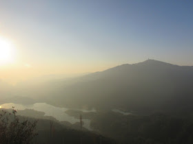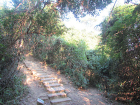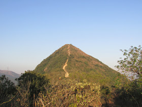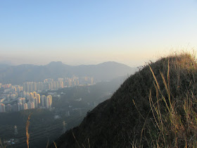 在梨木樹巴士總站下車,穿過城門下村寮屋區上城門水塘,是日平日加上農曆大除夕,不少人都趕於辦年貨,所以城門水塘遊人稀疏,卻能體會水塘靜美的一面,在斜陽的映射下更似一幀美麗的畫象,若然在周六或假日,水塘大壩由早上到黃昏準要變成無間斷的熱鬧了。在水塘留影過後,就快速上走1706級樓梯到針山山頂,需時不到半小時,是日能見度不太差,連最遠處的飛鵝山都明顯可見,而沙田新市鎮就藏在水泉澳、女婆山下。