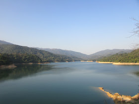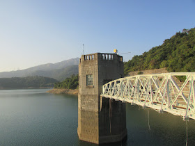 斜陽照射下的城門水塘大壩風光,大壩下乃通下城門水塘的「雙城峽」: