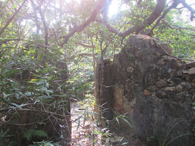 經鹿赤走廊南行十分鐘接鹿湖郊遊徑,如往西灣亭方向走,再十分鐘步程左右到鹿湖村遺址,位處夾萬坑中游,在上世紀中葉開村,但不到十年就廢棄,五座廢宅的明顯輪廓至今仍存。原路折回再急上鹿湖高原,之後就要覓路上牌額山,由東脊上,西脊落。上回訪遊牌額山已是三年半前的事,可能此脊遊人較少,人工密林長得很茂盛,初段路胚亦時而不見,較上回難走,花了不少力氣才上抵山頂。
