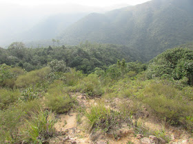 近正午在北潭坳起步,在偏快步速下用四十五分鐘步程到大浪坳,左路上蚺蛇尖,而右路上大蚊山。沿途都是不斷上山的密林地帶,中段其中一支路口通往山下方向,之後的一段路斜度頗高,但小心走是不難應付,最後臨到山頂處又有一個路口往下,如果向上走的話是很難迷路的。然而,若向下走的話就要小心,兩年多前首訪大蚊山,落大浪坳時一下山就走錯路,迎面看到夕陽已知不妙,後來很快修正,估計中途出現的支路應直落赤徑方向。