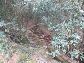 在紅石門坳左轉落紅石門,初段有塌樹所阻,頗為崎嶇: