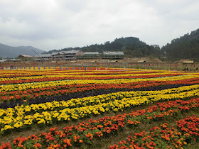 穿過時光隧道不久抵達「多彩花園」,映入眼簾的是大片黃花、橙花(都是孔雀草)及一排排五彩繽紛的向日葵風車,花海中還摻雜了一些洋鳳仙、羽毛甘藍、石竹等,再深處為面積非常廣闊的油菜花海,可是此時只餘廿分鐘就要上車,所以並無抵達花海盡頭,攝過一會就要離開。離開時遇見牛群在幾近乾涸的仙女湖中吃草,因牛群一步步的靠近園區,員工要把牠們趕走,防止牠們把美麗的花海踩壞。