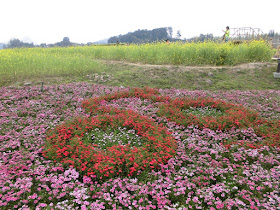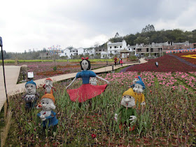 八點在酒店私人樓層餐廳早餐(與團友房間同層),極為方便,慢慢享用早餐後先回房稍為整頓,九點半乘一小時車到仙女湖花海遊覽。仙女湖花海位處昭平縣羅望村,景區才開業一年整,佔地約四百畝,門票60元(團費已包),以「仙女臨湖、鳳吟花海」為主題,共有三個大園區,最外是玫瑰園,後面是「多彩花園」,最深處是「花之海洋」(因應季節有所不同,現時為油菜花,夏天應是向日葵),最外圍還有尊大型的雞,或許是按照是年的生肖而定,但參閱網上圖片,去年的「吉祥物」不是猴子,而是鳳凰。