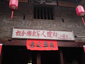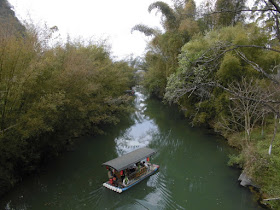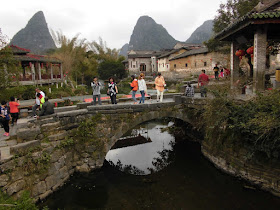 餐後隨即遊覽黃姚古鎮,屬國家4A級景區、歷史文化名鎮及最值得外國人去的五十大景點,已有近千年歷史,名字取自鎮內最多人的黃姓及姚姓,始建在明清朝代的兩層高樓房一排排聚在古鎮間,鎮道都以青磚石板砌成,還有小橋、流水及竹筏,身處其中有如回到幾十年前的年代。由於古鎮是受保護的旅遊區(進場門票一百元,團費已包),所以不容許大巴進入,先在鎮外的停車場換乘環保車,兩分鐘車程到鎮內停車場,然後深入內街參觀,欣賞以磚木砌成的古建築,並可見鎮內超過一半人家都經營客棧,日後若有機會自遊行訪遊賀州的話,就要入住古鎮內的客棧了,環境起碼較為清幽。在古鎮屋舍間穿梭,途經共有五口井的「仙人古井」,每口都有明確功用,村民不會把洗手、洗衣、洗菜、飲用水混作一起,但遊客就不知了。身為旅遊區,鎮內自然有賣土特產的地方,團中的師奶又是發揮她們天性的時間,把商店、攤販面前築成一道屏障,店主在較清靜的一天,無形中賺了一大筆錢。坳仔也應家人的呼籲,在此買了一些手信,但數量一定不及任何一個師奶為多。