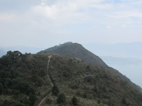 早茶後乘車至蘆慈田巴士站起步,繞經村篤接山墳上引水道,村篤有些新建的丁屋,離引水道相當近,步程只有一兩分鐘。過小橋接「拐李脊」,初段是樹林地帶,繞過山墳後就是不斷上山的路,中段離開樹林,而且越上斜度就越高,甚至需要手腳並用上爬,在背風及陽光直射下難免感到辛苦,很快就弄至滿身大汗,在稍為平坦的位置作小休之餘,亦可同時回望大尾篤群村及船灣的風光。