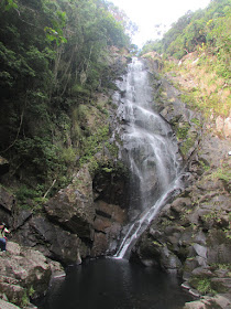 從抗日紀念碑接隱蔽山徑經疑似廢村遺址、新娘潭至照鏡潭,位處石水澗下游,因潭水清澈如鏡而名,瀑布高達35米,縱使在秋冬季仍是充滿水流,在夏季自然不用想了。在潭邊賞景幾分鐘,朝瀑邊捷徑急上烏蛟騰,半天旅程從此完畢,時間較預計早了很多。