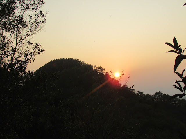 望著夕陽,經鵝髻頂往虎頭沙途中: