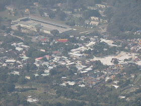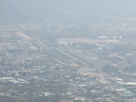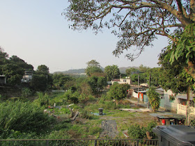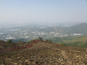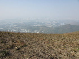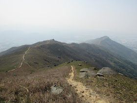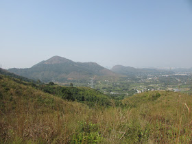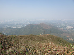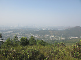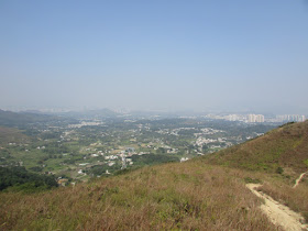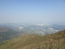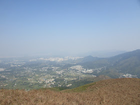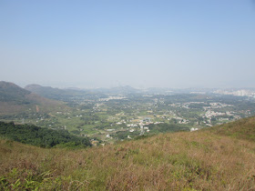 隨高度繼續上升,把頭轉向另一面,則是大刀屻(566米)、北大刀屻(480米)及八鄉群村,不過群村都沒甚綠油油的土地,很多不是建成密麻麻的丁屋,就是被闢成回收場、貨櫃場等重工業。繼續前行,快到山頂時新田、落馬洲邊陲魚塘群及牛潭尾的風景都呈現在眼前,可惜是日霧霾仍是較重,遠方景物無疑失色不少,如在能見度高的日子,將能一覽無遺的欣賞后海灣及米埔的風光。