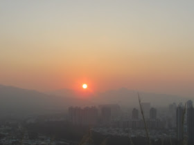 在蠔殼山看太陽沒入山嶺後的一刻: