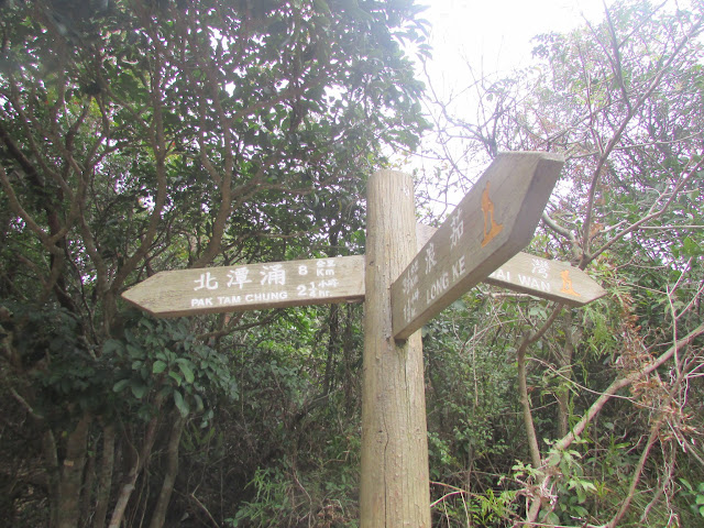 中午十二點半從北潭坳起步,沿途水泥路頗為潮濕,不過下達赤徑時天色更見明朗,雲底高度也超過三百五十米,較前一日為高,相信路線可進取一點,到西灣後轉走鹿湖高原後,再經牌額山至牛湖墩之間的小徑出北潭坳。一小時步程到達大浪村,大浪村並不是獨立一座鄉村,綜合地圖及鄉議局《原有鄉村名冊》,共分最少七村,包括大圍、鹹田、林屋圍、張屋圍、龍尾頭、大灣及東灣,當中只有前兩者仍有人居住,一般所述的「大浪」村皆指大圍。近年郊遊活動盛行,原居民近年也踏入退休潮而回鄉,大浪村民也像不少郊遊熱點所在的村落般,改善環境以吸引遊人,近月先後豎立了一些告示牌概述大浪村的歷史,但最近豎立的幾塊卻「亮點」處處,把「龍尾頭」當成「林屋圍」,把「大灣」當成「張屋圍」,兩村也在同一路上,還要與旁邊最早豎立的一塊牌上標著的位置自相矛盾(另一牌林屋圍及張屋圍所標示的位置及方向都正確)。未知那些有「亮點」的牌,是否由其他團體寫上,還是林屋圍及張屋圍兩村遊人難以到達的緣故,乾脆「將錯就錯」作罷,坳仔下次到訪時將會向村民反映,最起碼不能誤導遊人。