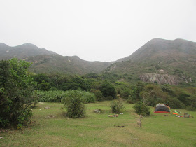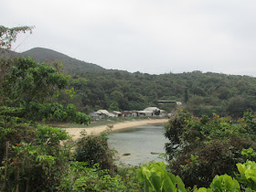 依山腰小徑往東灣,但不落沙灘,改經後面的叢林小徑及草地,草地上正有一對國內露營者,他們到星期日才回程。繼續在山腰小徑及水管路穿梭往大灣,中段要很小心的越過一處塌方(高約兩米)。由於此段有塌方,所以少了遊人下叢林變得頗為茂密,覓路時也應加以留神,最後抵達大灣沙灘後面的草地。由東灣草地至大灣約需半小時,後經大灣、龍尾頭兩座小廢村出大浪村(大圍)士多補給。