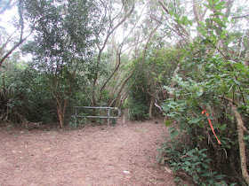 原來雲底高度剛好到達蚺蛇尖,所以大浪四灣的景色間中被薄霧籠罩,雲層則從東面而至,一過山頂就明顯消散,形成一幅有趣的畫面。在山頂休息廿分鐘,然後朝東面落米粉頂山脊,初段斜度頗高,更有一堵小直壁,看清踏腳位慢慢下降。從米粉頂下降東灣山坳的一段極多浮沙碎石,斜度也很高,同樣要細步下行才可避免滑倒,感覺較從大浪坳至蚺蛇尖的一段更為難行,幸好過往的樂善盃比賽都不經那段碎石滿佈的山脊,否則會對參賽者帶來很大危險了。東灣山坳海拔約二百米,還要再上約百米才到東灣山頂,可是雙腿已有疲倦感,所以繞經北面的環腰密林小徑,然後再落長咀坳。