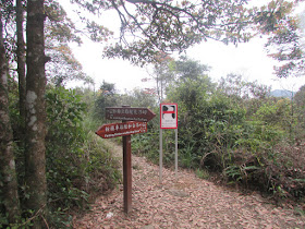 山頂處有座警告牌寫著「前路難行、雜草叢生」,但旁邊一支隱蔽小徑入口都無: