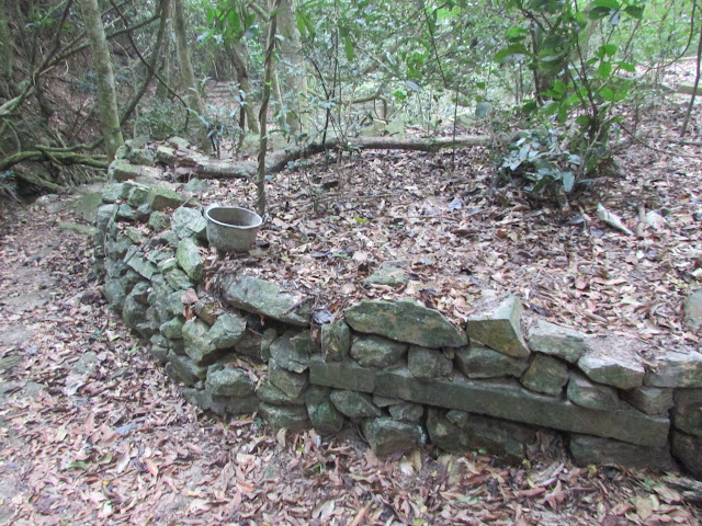 離開最東面的山崗,回走幾分鐘至小平地處,有一道隱蔽小徑北落牛屎湖村,直線距離只有兩百餘米。此段小徑同樣極少人訪遊,連引路帶也沒有,但路胚還是可見,亦因位處樹林的關係,沒甚密林荊棘藤蔓所阻,臨到底時路胚變得不明顯,變成自由發揮了。細心的下行十五分鐘到牛屎湖村。牛屎湖村已荒廢約五十年,但豬圈、爐灶等痕跡仍很完整,算是在廢村群中較有特色的一員。在村裡大休,並順道落海邊吹海風,適逢潮漲,碼頭的一些梯級都被海水掩蓋了。