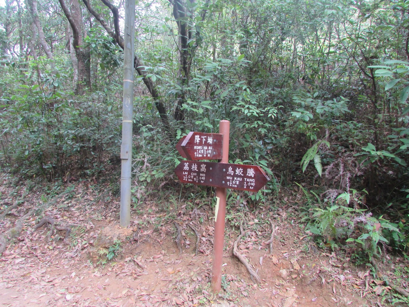 例牌在有記士多享用雞粥及山水豆腐花,雖然人很多,不過坳仔是獨行關係,可隨便找個空位坐,完全不用等候。在荔枝窩逗留半小時,經山尾坳往三椏村,然後穿過公廁旁邊的鐵欄上牛屎湖山。往來三椏至牛屎湖的小徑並不上山頂(141米),但是日趁有時間就順道上頂,惟那段路長期無人走訪,上行一小段就被塌樹封鎖。