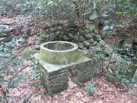 十點半在大埔墟站候車,假日遠足人士眾多,平均每兩班往大尾篤的小巴就有一班往烏蛟騰,但仍花半小時才能上車。沿烏蛟騰郊遊徑盤旋而上,轉往亞媽笏村遺址,在村裡發現左邊另有一道隱蔽的樓梯而下,估計是昔日往谷埔的古道,但沿引路帶前行不久就引至一片滿佈沼澤的廢田,前面再不見任何引路帶,所以沿路折返,再經「大路」落分水坳。