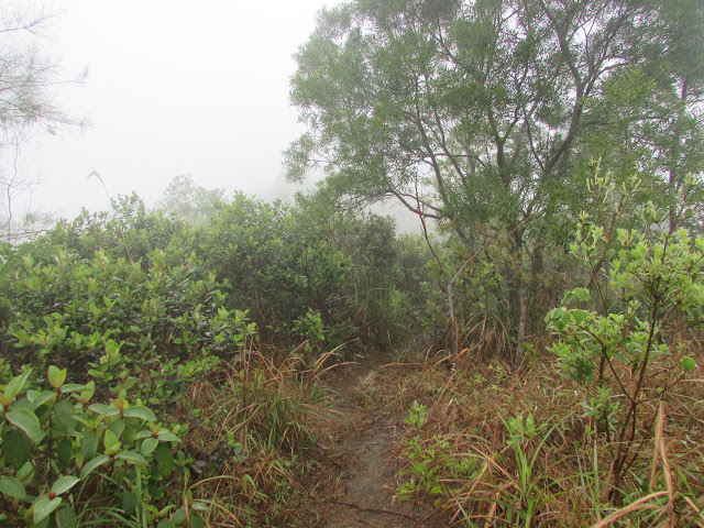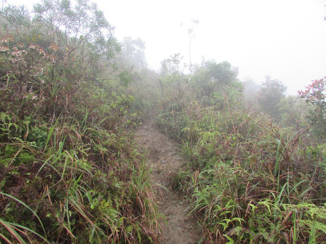 狗肚山已有三年多沒上過,而且早前幾次尋找長瀝尾的廢村都敗北而回,所以是日跟隨遠足隊標遊覽狗肚山、長瀝尾及大埔滘一帶,因為從提供的路線得知大隊相信會經長瀝尾的。近日持續有薄霧及小雨,所以山路普遍較為濕滑,在雲底高度不足三百米下,狗肚山上並無景可賞,而且部分位置更是濕滑非常。
