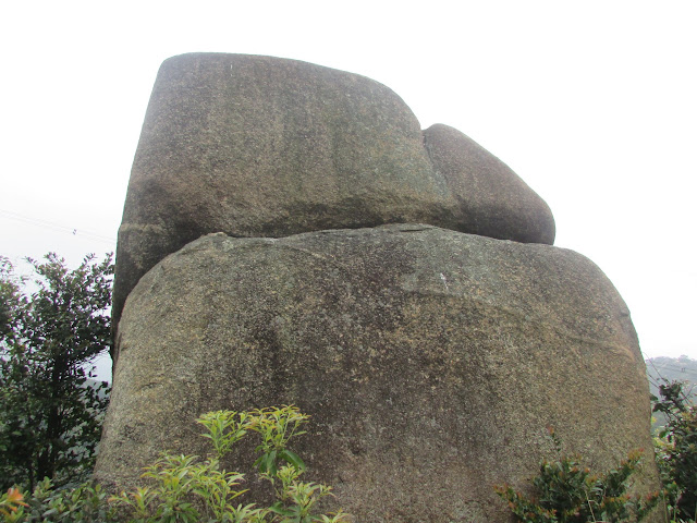 從壩的另一面上山,近來神鵰石及九逕山腹地極多遠足隊訪遊,更幾乎每個星期都有,只要尋找最多引路帶的支路而上,就很快到達海拔約三百米的「神鵰石」,沿途都是半植林地帶,亦有屯門一帶山嶺的浮沙碎石,所以上山時也應謹慎。由於神鵰石脊近來大熱,每道支路的引路帶被掛得如聖誕樹般,連沒有支路的地方都有不少(其實完全沒必要在非路口兼非路況不明時掛路標),像是遠足隊「插旗」之表現,或許很快會是某些「熱血青年」爭取道德光環的時間。神鵰石脊不是只有「神鵰石」,在「神鵰石」旁邊則有「天下第一椅石」(是日卻沒發現),中段還有「貓石」及一些怪石,只需發揮想像力即可。