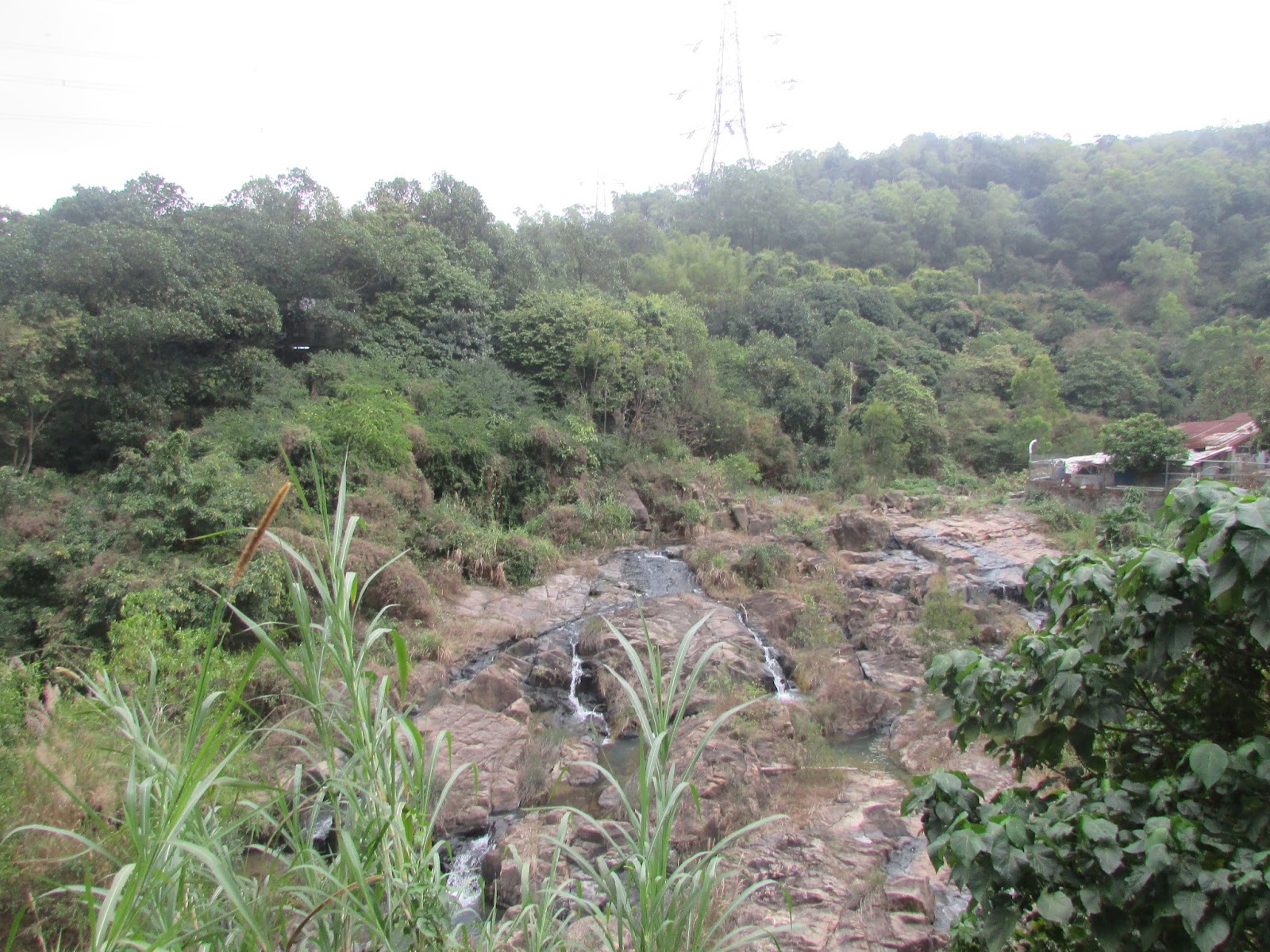 在丹桂坑畔前行,途經和平新村往洪水坑灌溉水塘水壩: