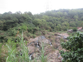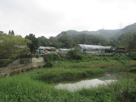三點半在鍾屋村輕鐵站起步,在鍾屋村村路左穿右插往洪水坑明渠,要不停細閱GPS地圖才能安心前行,其實旁邊根本有一道明顯的馬路,為何當初沒留意到呢?沿著明渠、丹桂坑下游右邊繼續向谷中前行,穿過和平新村,終抵洪水坑灌溉水塘,由鍾屋村至此約需半小時,萬萬想不到的是在丹桂坑還有牛群出沒,原來上一代人對屯門及元朗的想法,到2017年還未真正消失。洪水坑灌溉水塘往日為洪水橋、丹桂村、鍾屋村一帶村民的農耕水源,水塘呈狹長型,壩長77米,壩高20米,毗鄰藍地石礦場原址,與礦場山脊另一邊的藍地灌溉水塘相比,無論在形狀、容積、壩長以至壩高都十分相近,當然大家都是灌溉水塘,自然較為小型,但洪水坑水塘並無引路牌,所以遊人較少,而前往時也要留意村裡的狗隻。