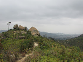 是日天氣不太佳,所以半天行程以短線閒遊為主,兩星期前曾試由屯門徑往洪水山,但體力及時間問題下只好放棄,是次改以較快捷的方法,經洪水坑灌溉水塘上山,途中探遊近來遠足界大熱的「神鵰石」,並順道在洪水山飽覽屯門、元朗及天水圍三個新市鎮的風光。