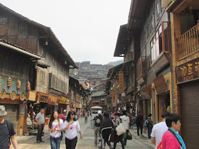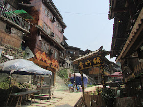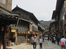 十分鐘後沿車回大街,在街上漫步,細賞苗家的建築及店鋪特色,街巷深處還有忙於修建的吊腳樓,沿途間中看見騾子搬磚,無疑產生幾分同感,在香城兩者角色更應掉換,大多數人都是一頭頭騾子,終日為他人服務,直至上年紀為止,不少動物隨時過得比人還要幸福。