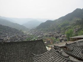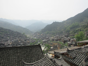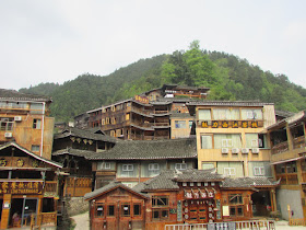 仍舊七點鐘起床,仍舊七點半早餐,仍舊是自助形式及櫃檯有廚師負責煮米線,仍舊八點半退房及開車,但前一晚是星期六,所以餐廳空位不多,裡面以同胞為主,沒其他港團。早餐後近一小時車到苗寨,臨到苗寨時可見不少「吊腳樓」,密度亦越來越高,以前未修公路時那裡位處深山,僅靠水路依西江出入,亦說明苗族人一向是依山而居的民族。