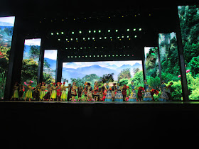 近六點乘車至貴陽大劇院觀看晚會,我們都被「降級」至最前排的VIP座位,雖然離舞台最近,但部分畫面卻被舞台屏蔽了,其實最佳觀賞位置大概是第四至六排。節目中段還有讓觀眾上台扮演苗族人,當中有兩位來自香城,主持也說了是晚有較多香城觀眾。八點半晚會散場,乘大半小時車,再入住第二晚住過的「湖城雅天大酒店」,但房間與兩晚前不同,當晚住十二樓,是晚住十七樓。