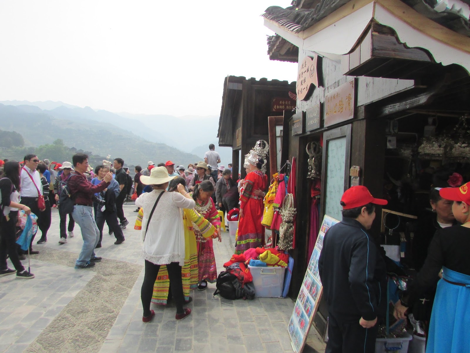 仍舊七點鐘起床,仍舊七點半早餐,仍舊是自助形式及櫃檯有廚師負責煮米線,仍舊八點半退房及開車,但前一晚是星期六,所以餐廳空位不多,裡面以同胞為主,沒其他港團。早餐後近一小時車到苗寨,臨到苗寨時可見不少「吊腳樓」,密度亦越來越高,以前未修公路時那裡位處深山,僅靠水路依西江出入,亦說明苗族人一向是依山而居的民族。