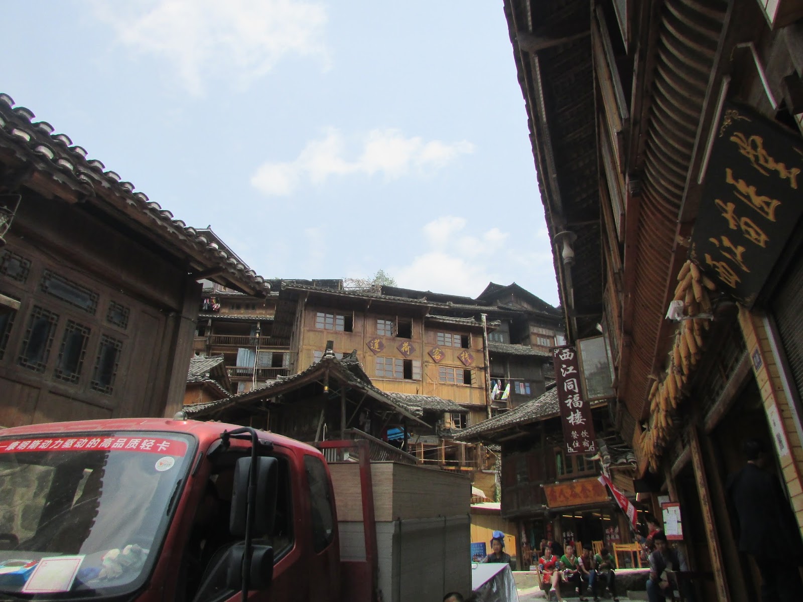 十分鐘後沿車回大街,在街上漫步,細賞苗家的建築及店鋪特色,街巷深處還有忙於修建的吊腳樓,沿途間中看見騾子搬磚,無疑產生幾分同感,在香城兩者角色更應掉換,大多數人都是一頭頭騾子,終日為他人服務,直至上年紀為止,不少動物隨時過得比人還要幸福。