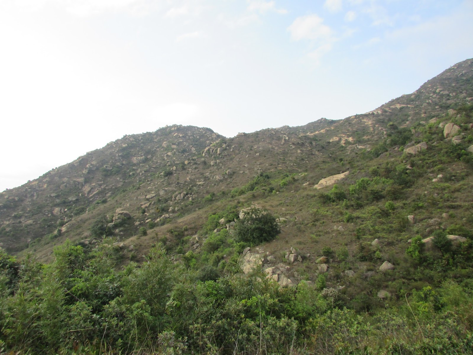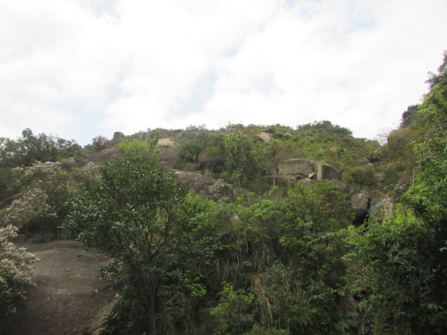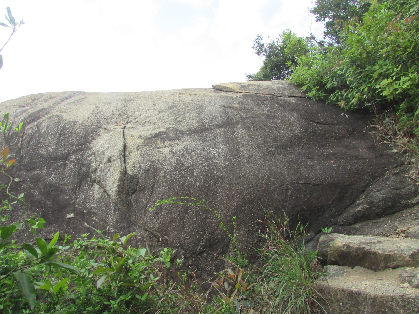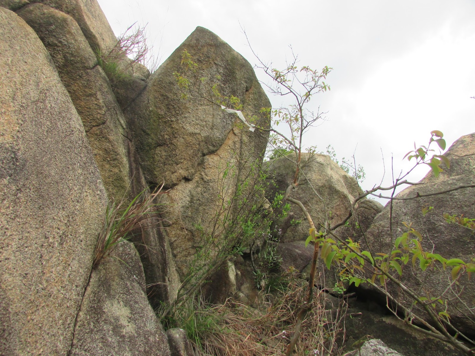 上山途中有不少歧路,路邊間中可見奇石,而且部分的體積還相當大,可是未適應春末的溫度之緣故,加上又處密林,已感到體力消耗得很快,最後在其中一處巨石觀景台上停下休息,欣賞山下屯門新市鎮的風貌,順帶為身體稍為降溫,至於傳說中的「飛來石」就找不著了。